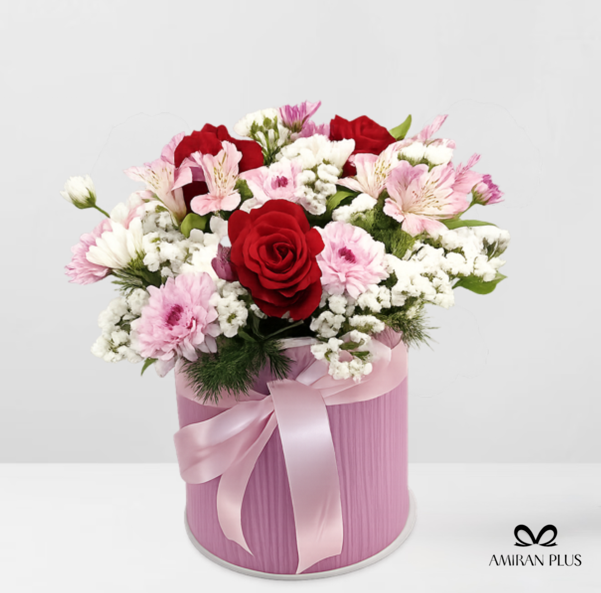 باکس گل بهاره کد ۱ با ترکیبی لطیف از گلهای تازه و رنگهای ملایم، انتخابی زیبا برای هدیه دادن در مناسبتهای مختلف است. حضور رزهای هلندی در کنار داوودی مینیاتوری و آلسترومریا، جلوهای ظریف و بهاری ایجاد کرده که حس طراوت و شادی را منتقل میکند.